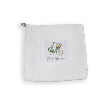 White Corduroy Zipper Pouch Vintage Bicycle Design, More designs available.